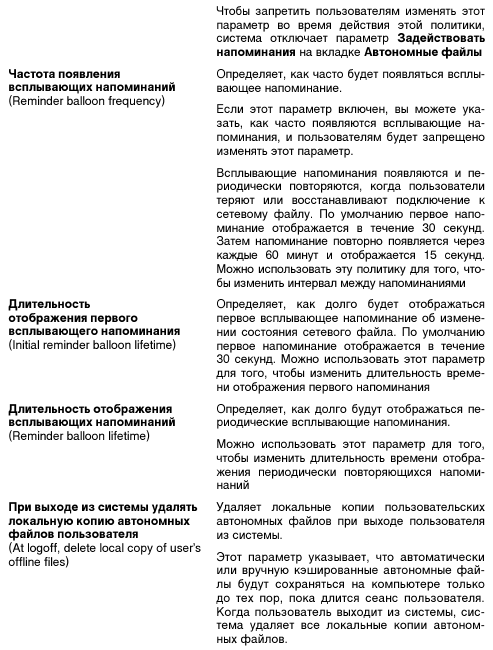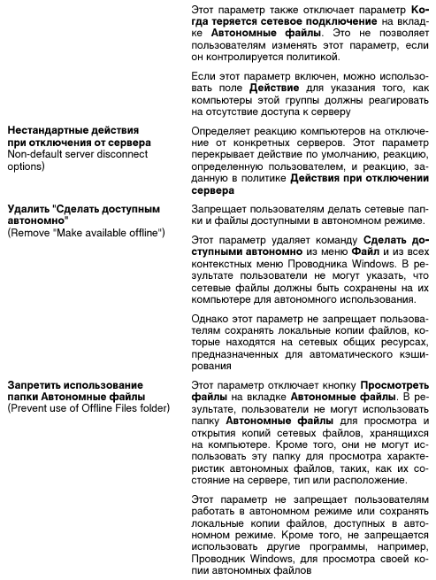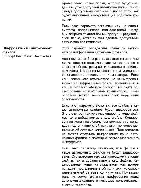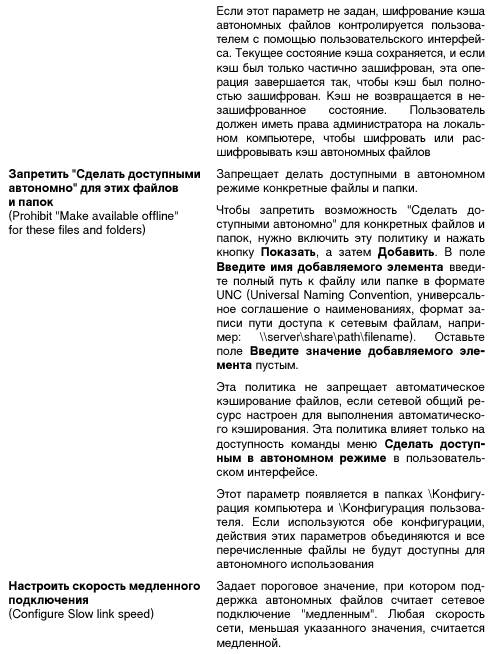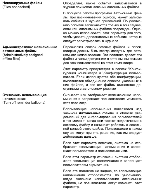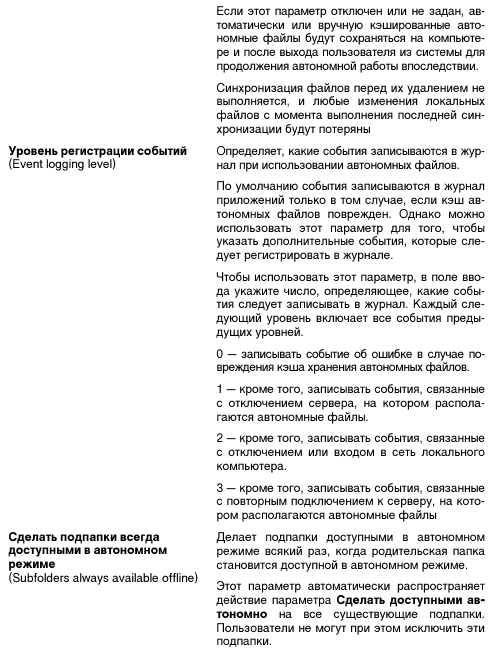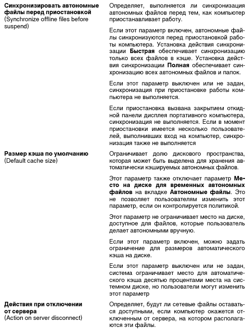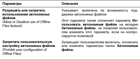 Таблица 3.6. Параметры Групповой политики для работы с автономными файлами
