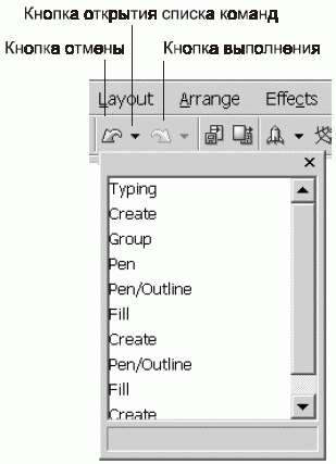 Рис. 3.27. Список выполненных операций на стандартной панели управления CorelDRAW