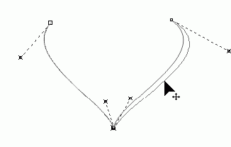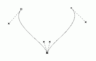 3. Разместите обе его управляющие точки симметрично относительно вертикали, проходящей через узел. Они должны располагаться достаточно близко друг к другу и выше узла.