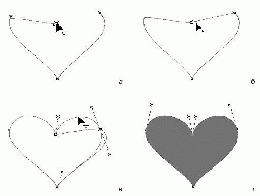 11. Откорректируйте верхние сегменты контура, изменяя их кривизну перетаскиванием мышью (рис. 3.47, в).