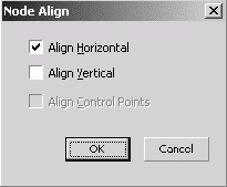2. Нажмите кнопку Align Nodes (Выравнивание узлов) на панели свойств. Она открывает диалоговое окно Node Align (Выравнивание узлов), в котором необходимо выбрать направление выравнивания (рис. 3.51, б). Установите в нем флажок Align Horizontal (Выравнивать по горизонтали) и снимите флажок Align Vertical (Выравнивать по вертикали).