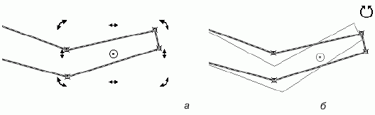 Рис. 3.50. Группа узлов: а – выделение; б – перемещение