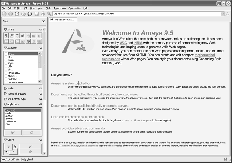 Amaya – браузер и редактор от создателей Веб