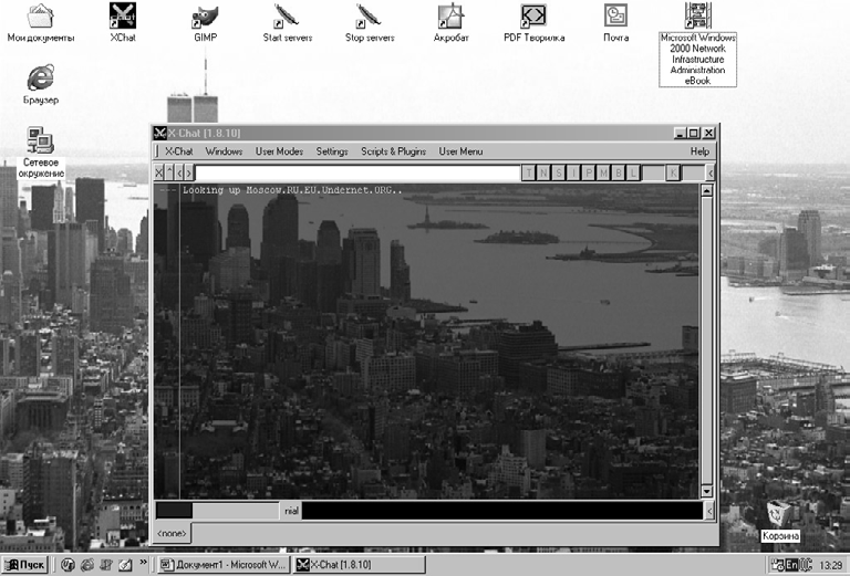 Программа-клиент может подключиться к такому серверу и предоставить своему пользователю возможность общаться на любом доступном канале или создать свой. Клиенты IRC доступны практически для любой операционной системы. Для одной только Windows их насчитывается несколько десятков. Самые популярные – mIRC, qlRC и многоплатформенный XChat. Автор предпочитает последний для работы как в MS Windows, так и в X Window под UNIX. На рис. 3.1 представлена версия для Windows.