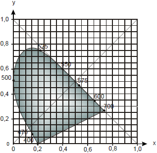 Рис. 1.3.13. Двухмерное нормированное цветовое пространство xyY