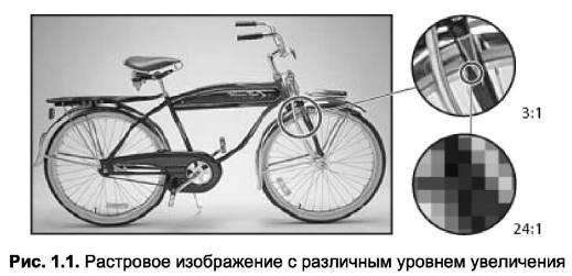 Растровые изображения состоят из сетки отдельных элементов (точек растра), называемых пикселями. При работе с такими изображениями операции выполняются не с объектами, а с пикселями. Каждый пиксель занимает определенную позицию и имеет установленный цвет. Качество растрового изображения зависит от количества содержащихся в нем пикселей на единицу длины (разрешения изображения): чем выше разрешение исходного изображения, тем выше его качество. Примером растрового изображения является любая фотография (рис. 1.1). Растровое изображение позволяет передать тонкие градации оттенков и цвета, но при этом оно теряет часть данных при изменении его размера.