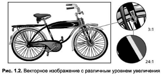 размера и любого разрешения без потери качества (рис. 1.2). Часто векторный формат изображения используется для логотипов, эмблем, шрифтов и т. д.