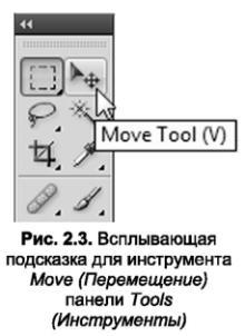 Не выбирая инструмент, а лишь наведя на него курсор мыши, можно увидеть всплывающую подсказку, в которой отображается название инструмента и клавиша для быстрого вызова (если таковая имеется) (рис. 2.3).