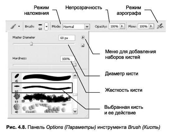 Каждый инструмент рисования имеет параметры, доступ к которым осуществляется через панель Options (Параметры) (рис. 4.8).