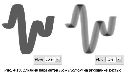 Параметр Flow (Поток) позволяет имитировать наложение краски в процессе рисования кистью (рис. 4.10).