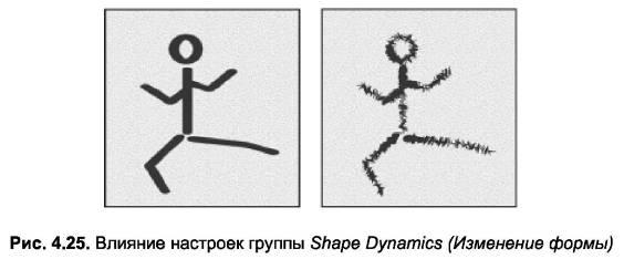 Shape Dynamics (Изменение формы) – используется для настройки параметров изменения формы мазка (рис. 4.25);