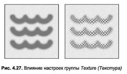 Texture (Тгкстура) – служит для управления наложением текстуры на мазок кисти (рис. 4.27);