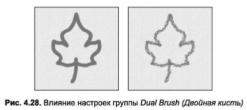 Dual Brush (Двойная кисть) – применяется для создания эффекта мазка, созданного двумя различными кистями (рис. 4.28);