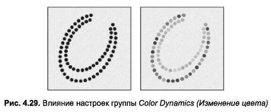 Color Dynamics (Изменение цвета) – с помощью настроек данной группы можно управлять распределением краски относительно мазка. Хотя предсказуемый результат получить достаточно трудно, можно легко достичь интересных эффектов (рис. 4.29);