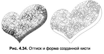 По нажатию кнопки OK новая фигурная кисть будет добавлена в панель Brushes (Кисти) и автоматически выбрана в качестве кисти для инструмента Brush (Кисть). На рис. 4.34 показан оттиск, создаваемый кистью, и форма созданной кисти.
