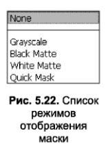 В нижней части диалогового окна расположен выпадающий список режимов отображения маски в окне самого документа – Selection Preview (Просмотр выделения) (рис. 5.22). В нем можно выбрать один из следующих вариантов: