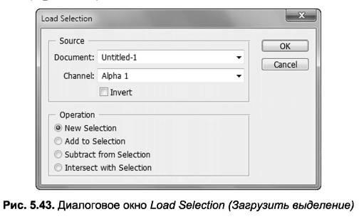 Существует еще один способ загрузки выделенных областей из других документов. Для этого нужно выбрать команду Select (Выделение) Load Selection (Загрузить выделение) – появится диалоговое окно, в котором можно задать документ-источник (Document) и канал, который будет загружен как выделение {Channel) (рис. 5.43).