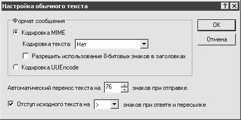 Если на вкладке Отправка сообщений нажать кнопку Настройка обычного текста, то на экране откроется окно, которое представлено на рис. 2.7.