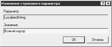 Как известно, стандартным способом переименовать Корзину на рабочем столе невозможно, поскольку соответствующая функция в локальном меню, вызываемом нажатием правой кнопки мыши на значке корзины, отсутствует. Однако системный реестр позволяет решить эту задачу с помощью строкового параметра LocalizedString, расположенного в разделе HKEY_CLASSES_ROOTCLSID{645FF040–5081–101B-9F08–00AA002F954E} – требуемый вариант названия (например, Всякий мусор) следует ввести с клавиатуры в окне редактирования параметра (рис. 2.2).