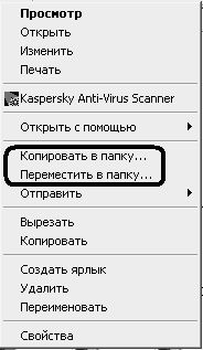 После внесения указанных изменений в системный реестр функции Копировать в папку и Переместить в папку войдут в состав локального меню Проводника без перезагрузки компьютера – их можно увидеть, спозиционировавшись на каком либо файле и нажав правую кнопку мыши (рис. 2.6).