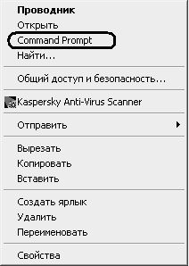 Рис. 2.7. Функция Command Prompt в локальном меню