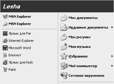 После внесения соответствующих изменений в реестр меню кнопки Пуск будет выглядеть так, как это показано на рис. 2.26.