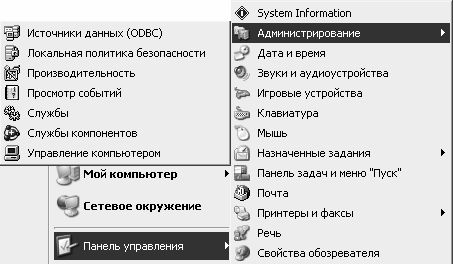 Итак, по умолчанию функция Администрирование входит в состав подменю Панель управления (рис. 2.27).