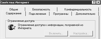 Чтобы сделать недоступными кнопки, которые расположены в области Ограничение доступа, необходимо в разделе реестра HKEY_CURRENT_USERSoftwarePolicies MicrosoftInternet ExplorerControl Panel создать параметр Ratings типа DWORD и присвоить ему значение 1; для этого используется следующий reg–файл: