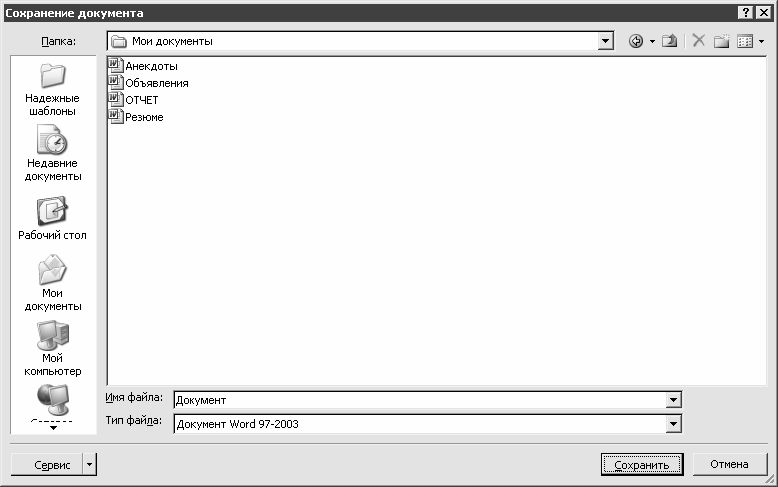 При первом сохранении документа после выполнения команды Сохранить открывается окно, изображенное на рис. 2.7.