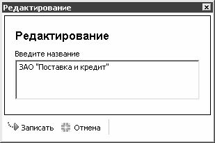 В данном окне следует с клавиатуры ввести произвольное название заказчика и нажать кнопку Записать. Отметим, что название заказчика должно быть уникальным, в противном случае после нажатия кнопки Записать программа потребует изменить введенное значение. С помощью кнопки Отмена осуществляется выход из данного режима без сохранения выполненных изменений.