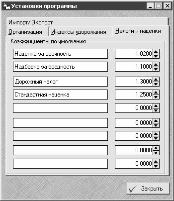 Содержимое вкладки Налоги и наценки показано на рис. 2.3.
