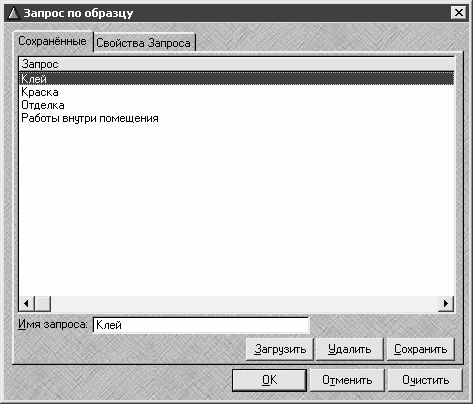 В данном окне осуществляется настройка параметров фильтра в соответствии с потребностями пользователя. Как видно на рисунке, окно состоит из двух вкладок: Сохраненные и Свойства запроса.
