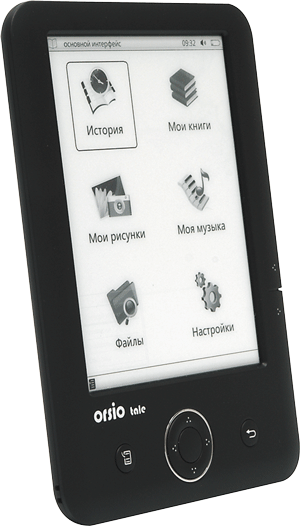 Самые распространенные форматы электронных «читалок» на базе экранов E Ink – 5 и 6 дюймов. 6-дюйм гаджет – для более комфортного чтения, однако носить его приходится в сумке или в очень крупном внешнем кармане. «Пятидюймовки» демонстрируют чуть более мелкий текст, зато модели легче и компактнее. «Читалка» Orsio tale с диагональю экрана 5 дюймов, можно сказать, миниатюрна: всего 149?105?10 мм при массе 147 г (без чехла и зарядного устройства). Батарея на 1300 мА·ч заряжается за 4 ч и обеспечивает «пролистывание» свыше 10 тыс. электронных страниц; имеется выход для наушников и возможность воспроизводить звуковые файлы. Распознаются все основные форматы электронных книг, а удобство органов управления позволяет уверенно оперировать «читалкой» той же рукой, что будет ее удерживать. Гаджет оснащен 2-Гбайт собственной памятью и способен работать с картами microSD объемом до 16 Гбайт.