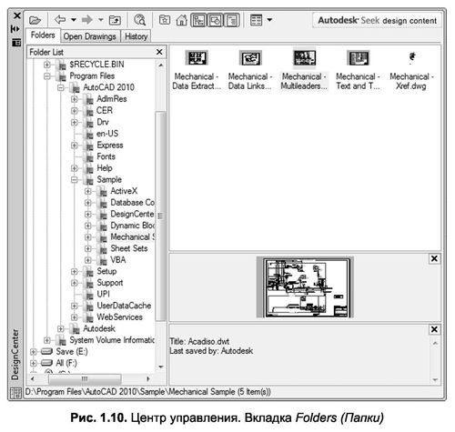 Folders (Папки) – содержит дерево папок компьютера; предназначено для поиска растровых изображений, чертежей AutoCAD и некоторых других документов (рис. 1.10);
