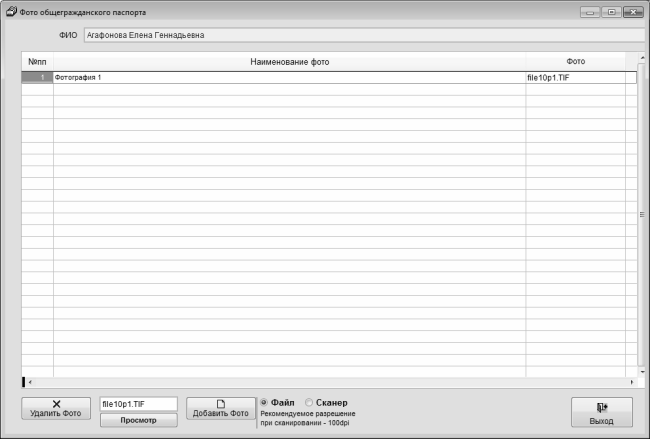 Рис. 1.13. Окно Фото общегражданского паспорта