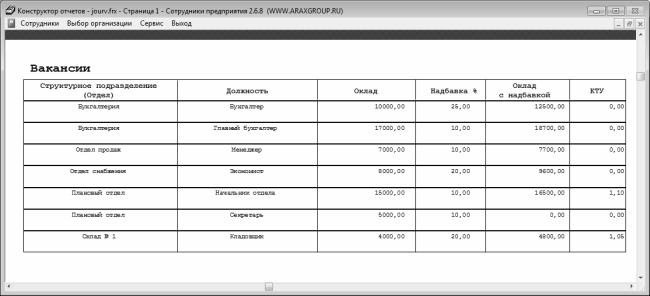 Если же флажок Просмотр снят, то список вакансий предприятия будет сразу отправлен на принтер.