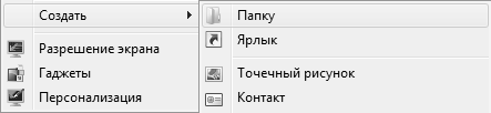 Чтобы создать на Рабочем столе новую папку, нужно щелкнуть на нем правой кнопкой мыши, и в открывшемся контекстном меню выбрать команду Создать ? Папку (рис. 2.1).