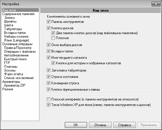Рис. 4.9. Настройка параметров программы, раздел Вид окна