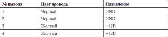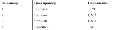 Таблица 4.7. Разъем для питания внешних устройств – Molex для АТА – дисков и приводов CD