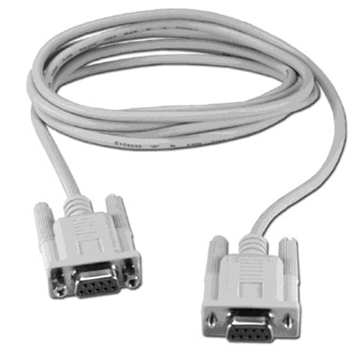 Кабели для подключения RS-232 делятся на удлинительные (вилка-гнездо, рис. 3.2) и соединительные (гнездо-гнездо, рис. 3.3), последние часто называют нуль-модемными. В соединительных кабелях, обеспечивающих обмен между двумя устройствами, приемные-передающие линии (2-й и 3-й контакты 9-контактного разъема) соединены перекрестно. В правильном нуль-модемном кабеле контакт 4 (DTR, Data Terminal Ready, готовность компьютера) на противоположной стороне также соединяется с 1 и 6 контактами (DCD и DSR – готовность модема). В удлинительных кабелях все эти контакты соединены один к одному.