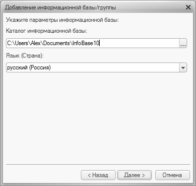 Рис. 1.5. Путь к каталогу информационной базы