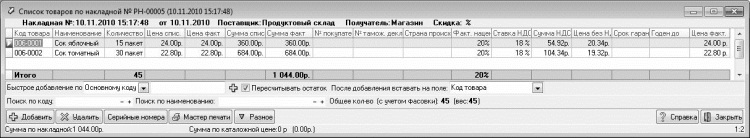 Рис. 1.33. Спецификация накладной на внутреннее перемещение