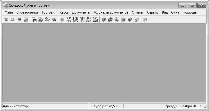 Рис. 2.1. Интерфейс программы «Складской учет и торговля»