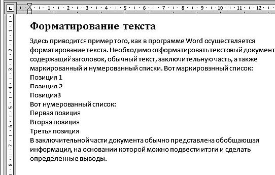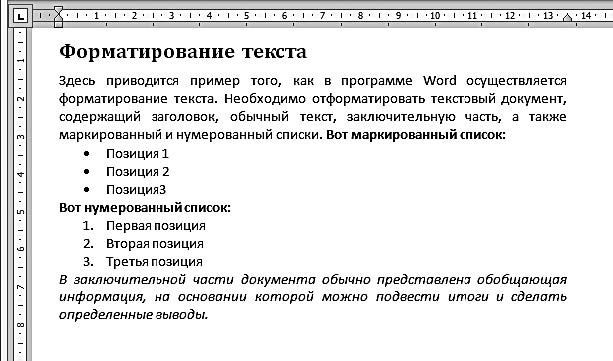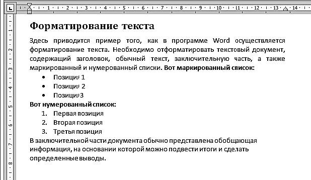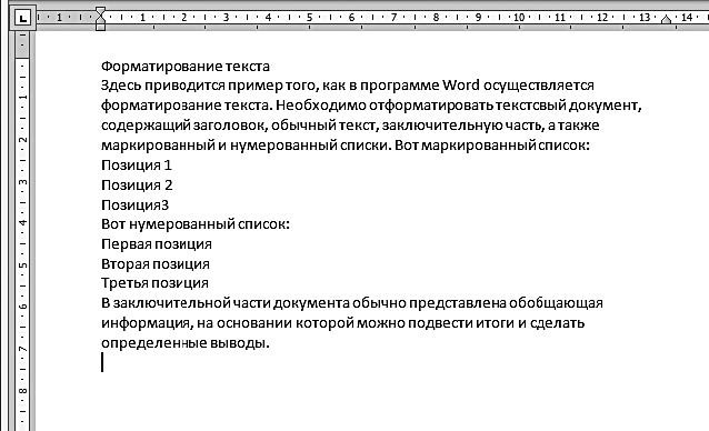 Сравнив полученный результат с исходным текстом (см. рис. 2.8), можно убедиться, что после форматирования документ стал намного нагляднее и удобнее для восприятия.