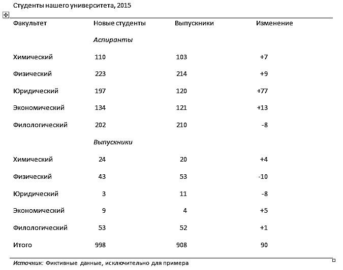 В программе Word есть удобный механизм вставки таблиц, с которым мы познакомимся позже, при рассмотрении практического примера по созданию бухгалтерского документа. Однако бывают ситуации, когда желательно создать таблицу максимально быстро, чтобы в ней уже были заполнены некоторые ячейки (заголовки строк, столбцов и др.), да и чтобы саму таблицу не пришлось потом форматировать (выделять те либо иные ячейки, строки, столбцы, менять шрифт и т. п.).