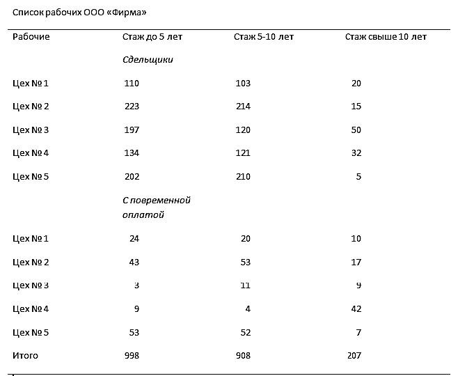 Как видно на рисунке, мы получили готовую отформатированную таблицу со списком, в которой нам осталось лишь с клавиатуры ввести требуемые корректировки. Составим список работников предприятия, указав стаж каждого из них, отдельно по сдельщикам и повременщикам (рис. 2.33).