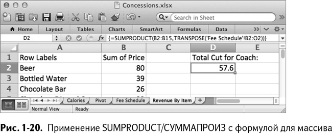Победа! Как видно на рис. 1-20, результатом вычислений является 57,60 долларов. Но я бы округлил его до 50 – неужели Тренеру нужно столько носков?