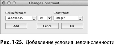 Точно так же можно добавить условие целочисленности для С2:С15, как показано на рис. 1-25.
