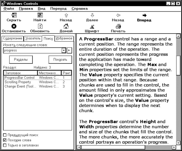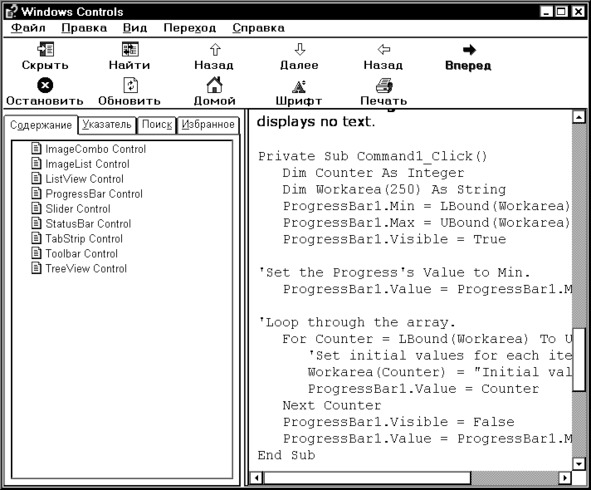 Рис.2.17. Справочная система Visual Basic – ProgressBar (Индикатор выполнения)