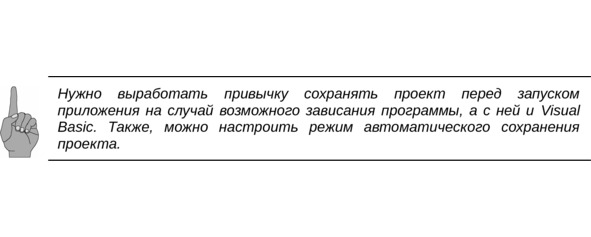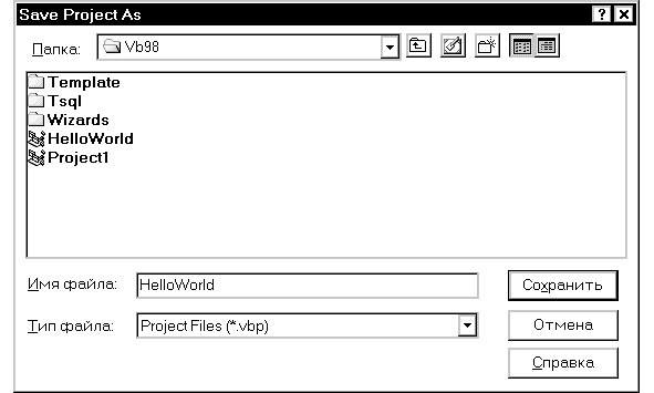 Автор не сомневается в том, что создание приложений с помощью Visual Basic увлечет вас и возникнет необходимость в сохранении проекта на диске, а также его последующей загрузке для продолжения работы. Сделать это очень просто, аналогично сохранению документа Microsoft Office.